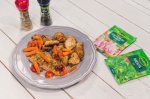 Spala, curata si taie cartofii rondele subtiri. Stropeste-i cu 50ml ulei de masline si condimenteaza-i cu mix pentru cartofi prajiti; Pune-i intr-o tava de cuptor cu hartie de copt si pregateste-i in cuptor la 180 de grade C, pentru cca 20 – 25 de min (sa fie 3 sferturi gatiti);...