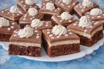 Blat: Se freaca galbenusurile cu zaharul pana se topeste zaharul, apoi se amesteca cu unt si se adauga ciocolata topita, faina, praful de copt, romul si albusurile batute spuma. La sfarsit se adauga nuca si cacaua. Se tapeteaza o tava cu hartie de copt se toarna compozitie cam de doua degete,...