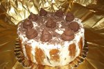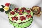 Mai intai am facut frisca, am mixat smantana dulce cu zaharul pana am obtinut o frisca ferma. Am amestecat mascarponele cu dulceata de capsuni. Separat am pus la hidratat gelatina cu apa rece ( cca 3 linguri de apa). Galbenusurile cu zaharul le-am pus pe baie de aburi si am amestecat bine pana...