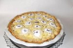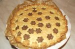 Intr-un castron am cernut faina, am adaugat ouale, zaharul, untul si untura si coaja de lamaie, am framantat pana am obtinut un aluat nelipicios. Am lasat la rece cca 20 min. Apoi am impartit aluatul in 12 parti aproximativ egale, am intins fiecare bucatica si am asezat-o in forma, am intepat cu...