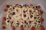 Prajitura cu nuca,dulceata de capsuni si bezea