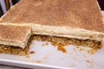 Pragatim siropul : Se caramelizeaza cele 2 linguri de zahar, dupa care se stinge cu 100 ml lapte. Se lasa pana se topeste zaharul si se da la racit. Pregatim blatul: Untul la temperatura camerei se freaca cu zaharul pana se spumeaza. Se adauga ouale, unul cate unul, mixand...