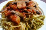Spaghete tricolore cu ciuperci fripte