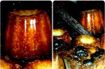 Într-un bol, bateti ouale. Pastaia de vanilie o taiati pe lungime si o curatati bine de seminte. Se pune la fiert laptele cu pastaia de vanilie taiata, semințele de vanilie, esenta de vanilie si untul. Asigurați-vă că untul este topit. Se toarnă laptele fierbinte peste ouă...
