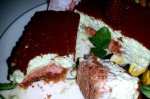 Amestecam si diluam dulceata cu zeama de lamaie. Separam albusurile de galbenuri. Batem albusurile cu un praf de sare. Adaugam un pic de dulceata pentru a le colora si treptat 100 g de zahar, continuand sa le batem pana se vor tine ca o bezea. Dati la rece. Se freaca galbenusurile...