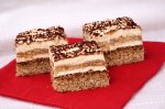 Blat : Mixam albusurile spuma tare, adaugam zaharul, apoi galbenusurile pe rand, uleiul treptat, iar la final faina amestecata cu praful de copt. Punem compozitia intr-o tava dreptunghiulara (d=35*23 cm) sau intr-o forma rotunda (d=28 cm), unsa cu putin ulei si tapetata cu hartie de copt. Dam la...