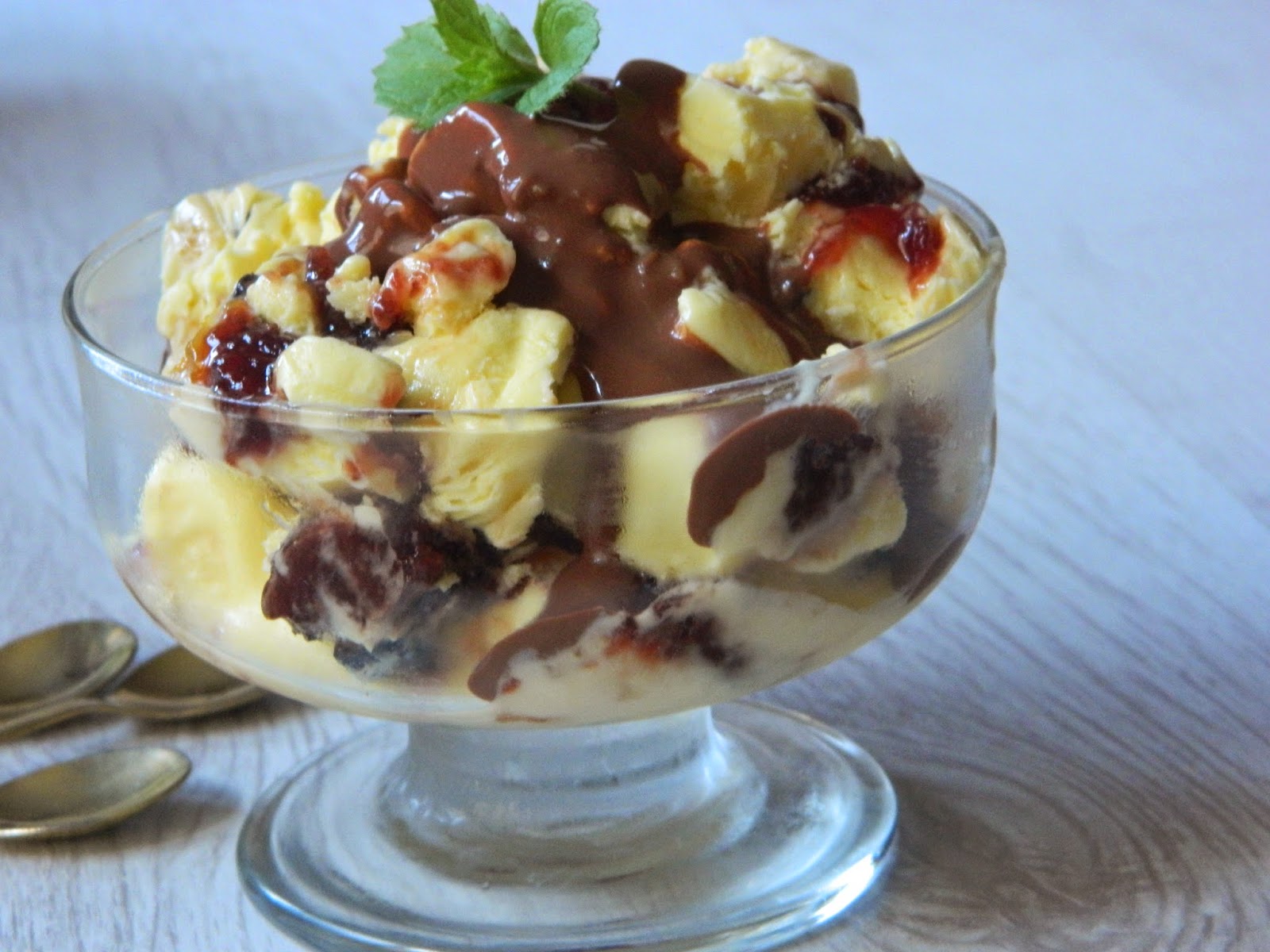Desert inghetata de vanilie cu gem de capsuni si fructe deshidratate