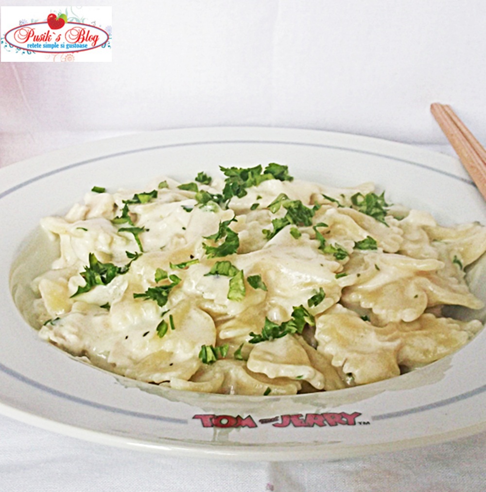 Farfalle cu pui in sos alb