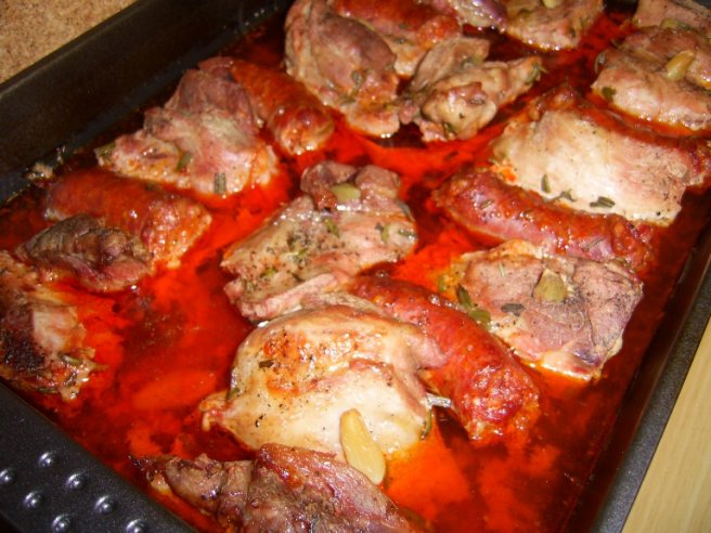 Friptura de porc cu carnati si rozmarin