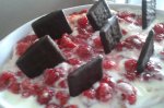 Deasupra se pune zmeurica spalata si cateva bucatele de cioco cu menta.