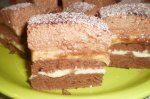 Se bat albusurile spuma cu zaharul si adaugam treptat apa. Separat faina se amesteca cu cacaoa si praful de copt si se adauga peste albusuri. Compozitia se toarna in tava tapetata si se da la cuptor la foc mic. Se prepara budinca cu 700 ml de lapte, amestecam in ea si galbenusurile ramase, se...