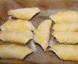Se rulează ca și un corn, apoi se așează în tava tapetată cu foaie de pergament. Se ung cu ou bătut, se presară, sare şi parmesan ras, apoi se pun la copt, în cuptorul preîncins, pentru cca. 15 minute la 250 grade.