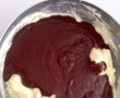 Intr-un castron am pus crema mascarpone, peste ea crema de ciocolata, afine si zmeura.