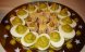 Se pun intr-un bol mai adanc iar peste ei se toarna mixul de ulei, usturoi zdrobit, sare si condimente. Se amesteca bine, sa patrunda sosul...